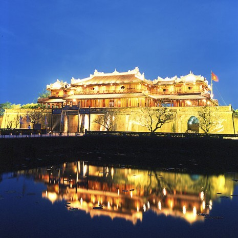 12h30: HDV Da Nang Travel Mart đưa quý khách tham quan Đại Nội (Hoàng Cung của 13 vị vua triều Nguyễn, triều đại phong kiến cuối cùng của Việt Nam: Ngọ Môn, Điện Thái Hoà, Tử Cấm Thành, Thế Miếu, Hiển Lâm Các, Cửu Đỉnh) Ðại Nội với kiến trúc nghệ thuật cung đình và vườn hào độc đáo đã được khởi công xây dựng vào khoảng hơn hai thế kỷ trước. Hoàng gia nhà Nguyễn bắt đầu bởi vua Gia Long qua 13 đời vua đã sinh hoạt tại Ðại Nội liên tục cho đến khi triều đại kết thúc sau tuyên bố thoái vị của vua Bảo Đại trong cuộc Cách mạng tháng 08 năm 1945.