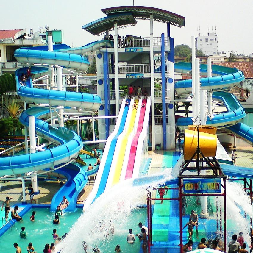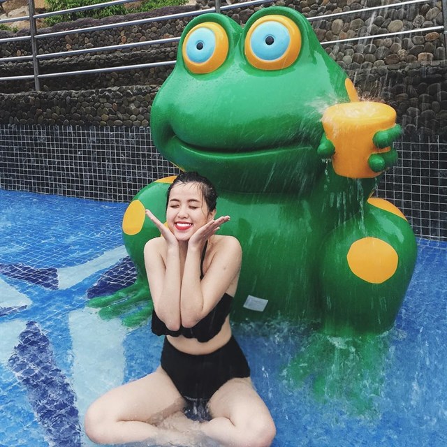 Đoàn sẽ di chuyển bằng xe điện để đến với khu vực “Bọng Rồng” với hồ bơi lớn trung tâm cùng nhiều trò chơi nước hấp dẫn dành cho trẻ em và cả người lớn.